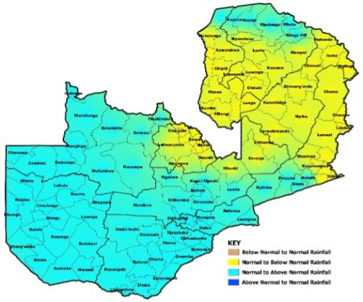 - OND & NDJ: Normal – above-normal rainfall in most areas; normal – below-normal expected in Copperbelt, Northern, and Muchinga.